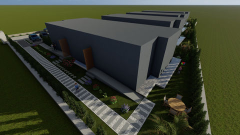 8 ikiz villa, 16 otopark, yaya yolu, özel kullanım bahçe tasarımı